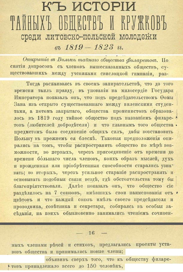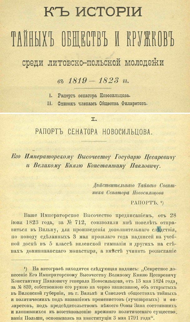 "Исторія тайныхъ кружковъ и обществъ, которые около 1820 года возникли среди литовско-польской молодежи,...