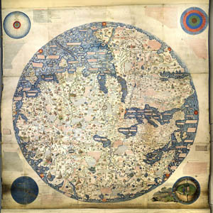 До настоящего времени сохранились только два экземпляра карты мира фра Мауро — оригинал в Венеции и копия в Британском музее. По обычаю арабских картографов, он помещал наверх карты юг, а не север. Судя по записям на картах, он разделял мнение о сферичности Земного шара. (В углу карты представлена диаграмма традиционной геоцентрической модели вселенной Птолемея).