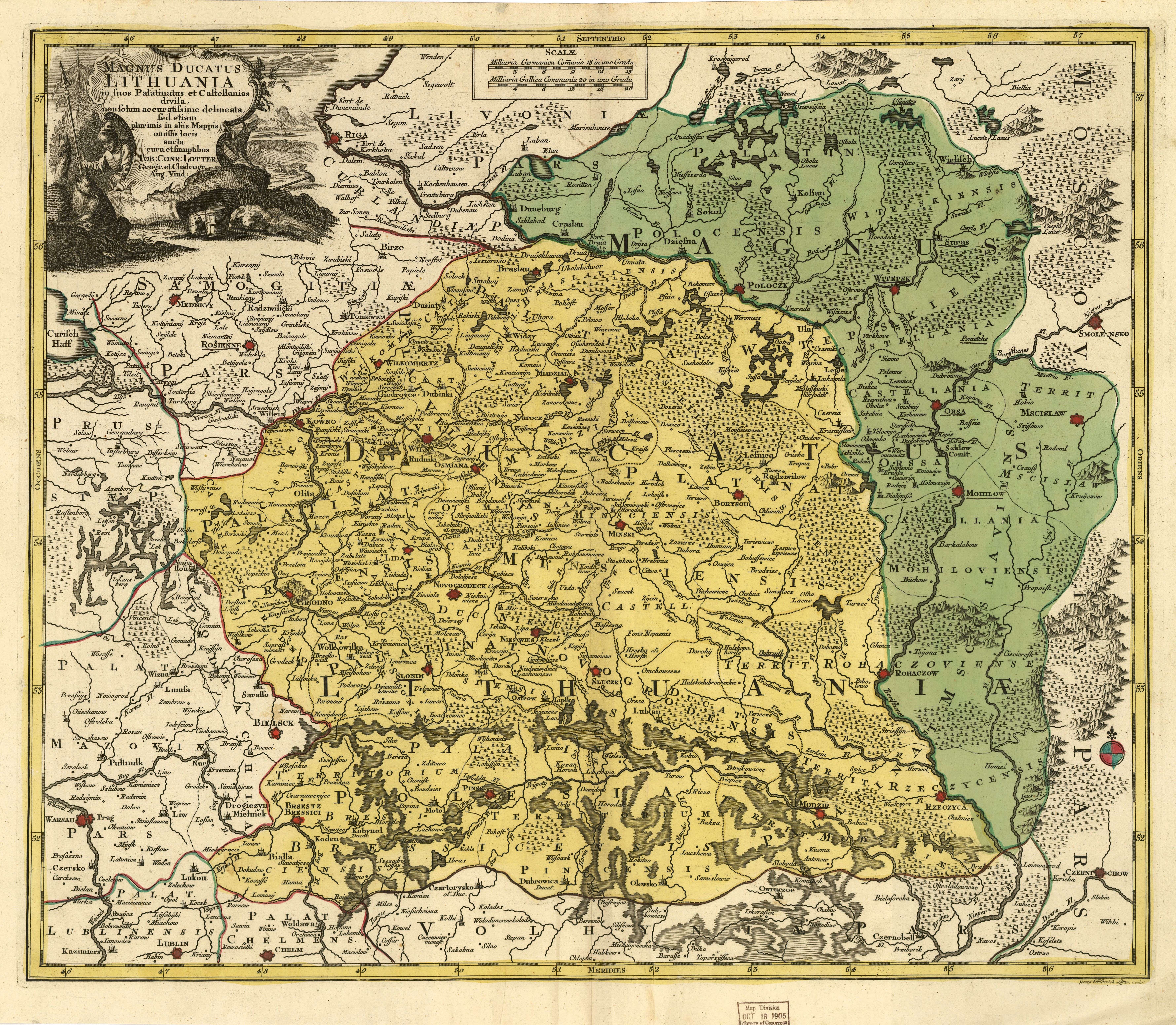 Иохан Мюллер в своем Атласе уточняет. Litthauen — Вильна, Троки, Гродно, Новгородок, Брест, Браслав. Litthauische Reussen — Минск, Мстиславль, Витебск, Полоцк, Смоленск. Разделение по-прежнему проходит по Березине. Все, что севернее Вильно — Samogitien.