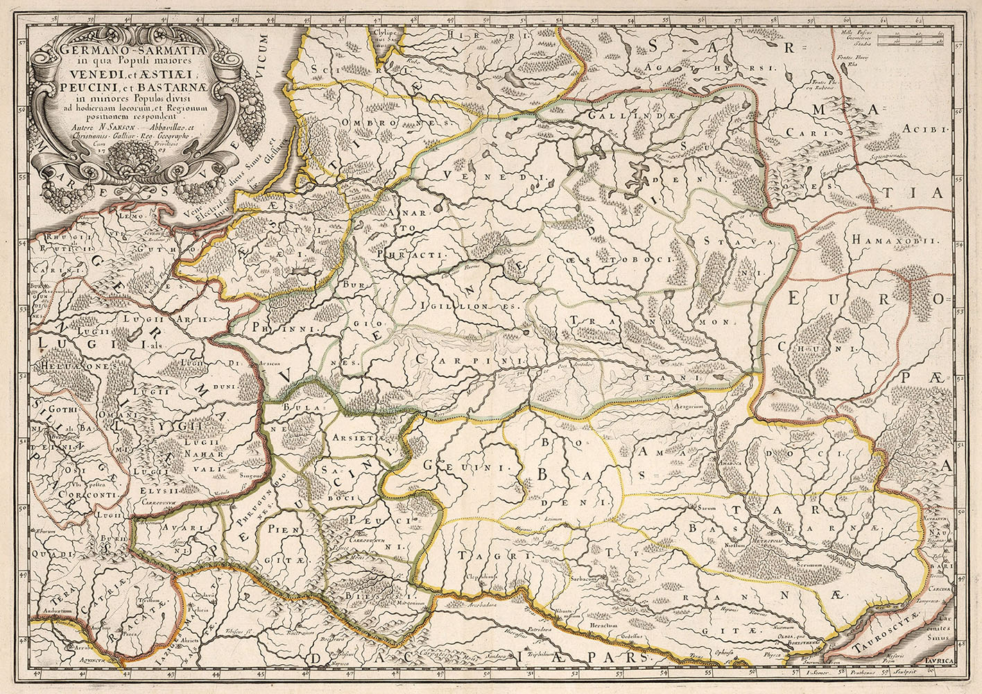 Территория Беларуси в период до VIII века относилась к Европейской Сарматии. Карта Сансона "Сарматия" 1660 года показывает расселение летописных народов Европы. В центре карты — море Геродота (Сарматское море), занимавшее территорию современного Полесья.