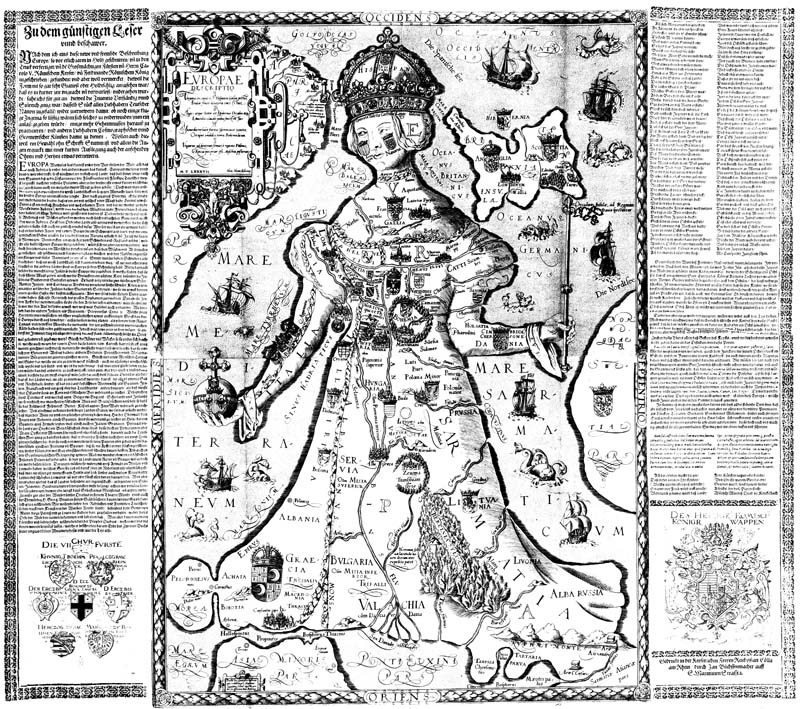 1537, Первая версия карты Europa Regina (Королева Европа).
