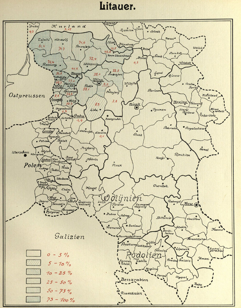 Этническую принадлежность земель хорошо иллюстрируют данные по сельской местности. До 1863 года образование велось на польском языке, после — на русском. Поэтому данные по большим городам, где процент образованных людей был значительно выше, могли существенно отличаться.