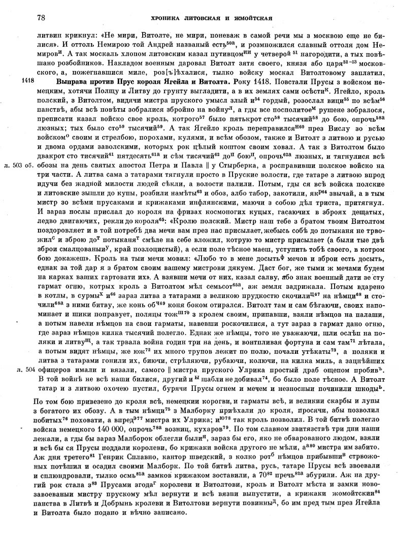 [ "Сорок литовских хоругвей и пятьдесят польских... Пятьдесят первая — Сигизмунда Корибута..." Сигизмунд Корибут — внук Ольгерда, князь Новгород-Северский (Укр.), участник Гуситских войн, правитель Чехии, сторонник в. кн. Свидригайло в Гражданской войне 1432-38. ]