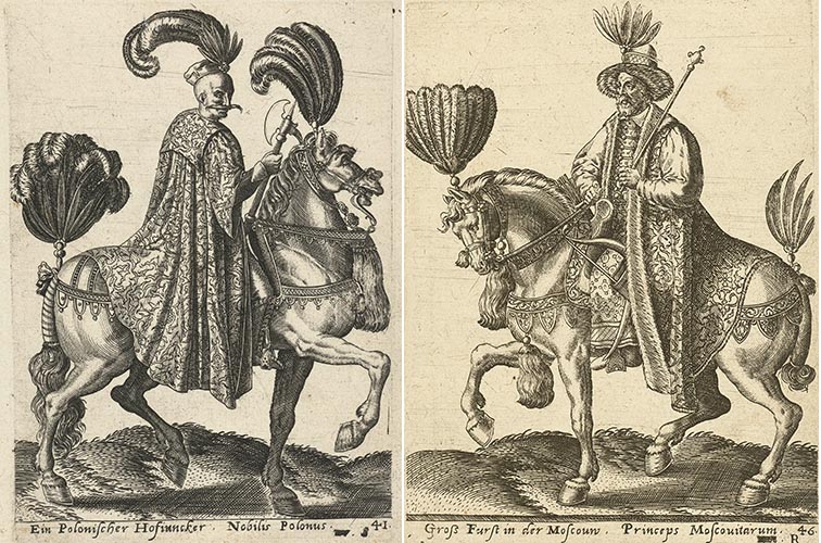 Eques (reuters) — рыцари, всадники — Moscovita. И немного экзотики от А. де Брейна — Nobilus Polonus & Princeps Moscovitarum (знатный поляк и московский князь).