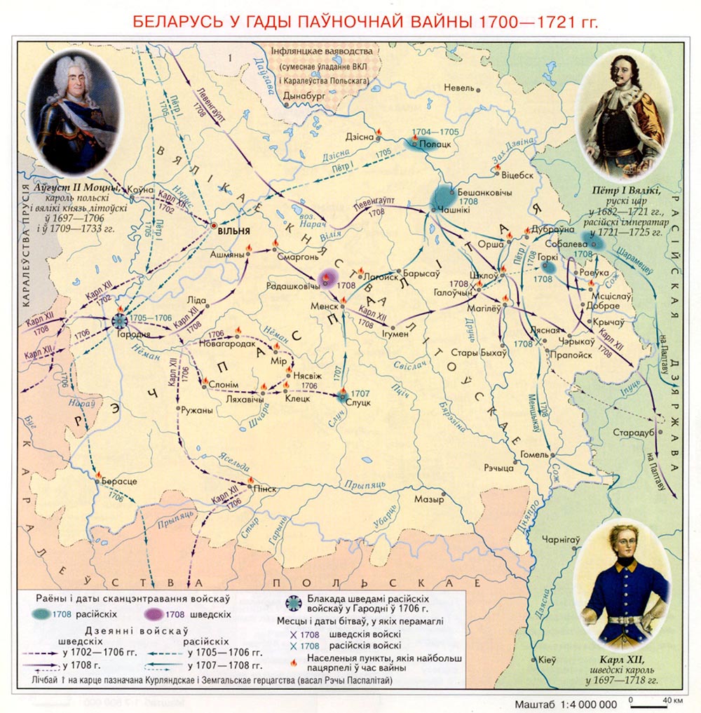 1700-1721 Великая Северная война. В силу множества нерешенных внутренних проблем и конфликтов, Речь Посполитая и ВКЛ стали ареной борьбы двух иноземных армий.