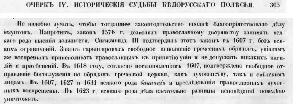 " Уния не была случайными явлением; она не была и результатом личных только расчетов и своевольных действий отдельных представителей православной церковной иерархия. Она была обусловлена исторической жизнью русской православной церкви в Литве и явилась ее прямым результатом.