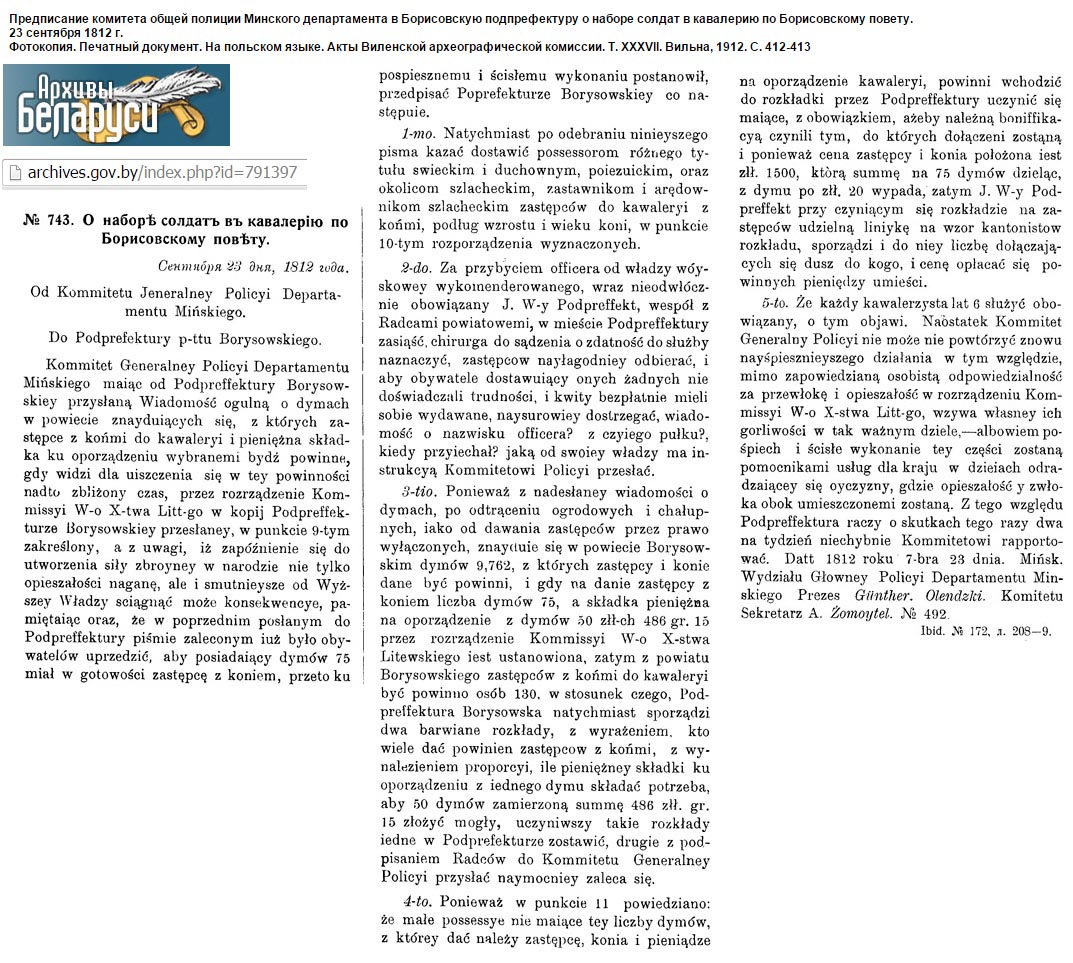 16 (28) июня войска Наполеона без боя заняли Вильну. Император предоставил право первым вступить в город полку улан под командованием князя Доминика Радзивилла — владельца несвижской ординации.