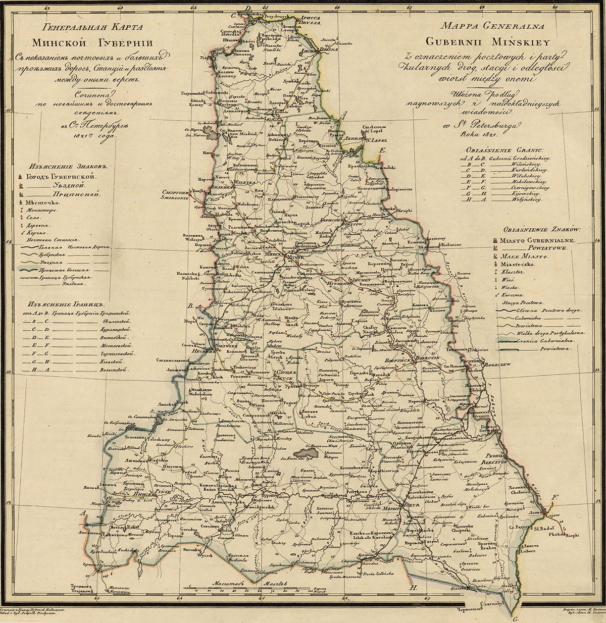 В "Географическом атласе Российской империи, Царства Польского и Великого княжества Финляндского" 1821 года надписи на картах губерний Северо-Западного края дублировались на польском. Эстляндской и Лифляндской — на немецком. Остальной России — на французском. ]