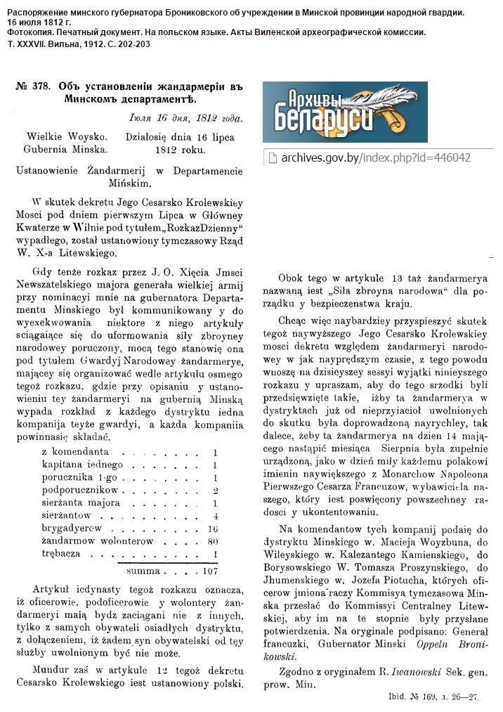 Общая численность вооруженных сил ВКЛ, возрождавшегося под протекцией Наполеона, достигла к 1 ноября 1812 года примерно 21 тысячи человек. Это 5 пехотных полков (до 10 тыс. чел.), 5 кавалерийских полков и конная батарея (5,2 тыс.), 3 егерских батальона (2,4 тыс.), отряды национальной гвардии (1,5 тыс.), жандармские роты (около 1850 чел.).