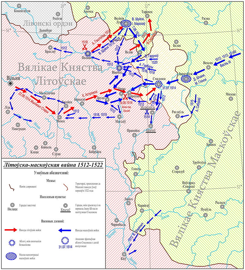 Москва продолжила свою экспансию на белорусские земли. В начале войны были захвачены Смоленск, Мстиславь, осаждены Витебск и Полоцк. Однако 8 сентября 1514 года разгром московских войск в битве под Оршей изменил ход войны. И еще 250 лет после битвы литвины успешно защищали свою восточную границу.