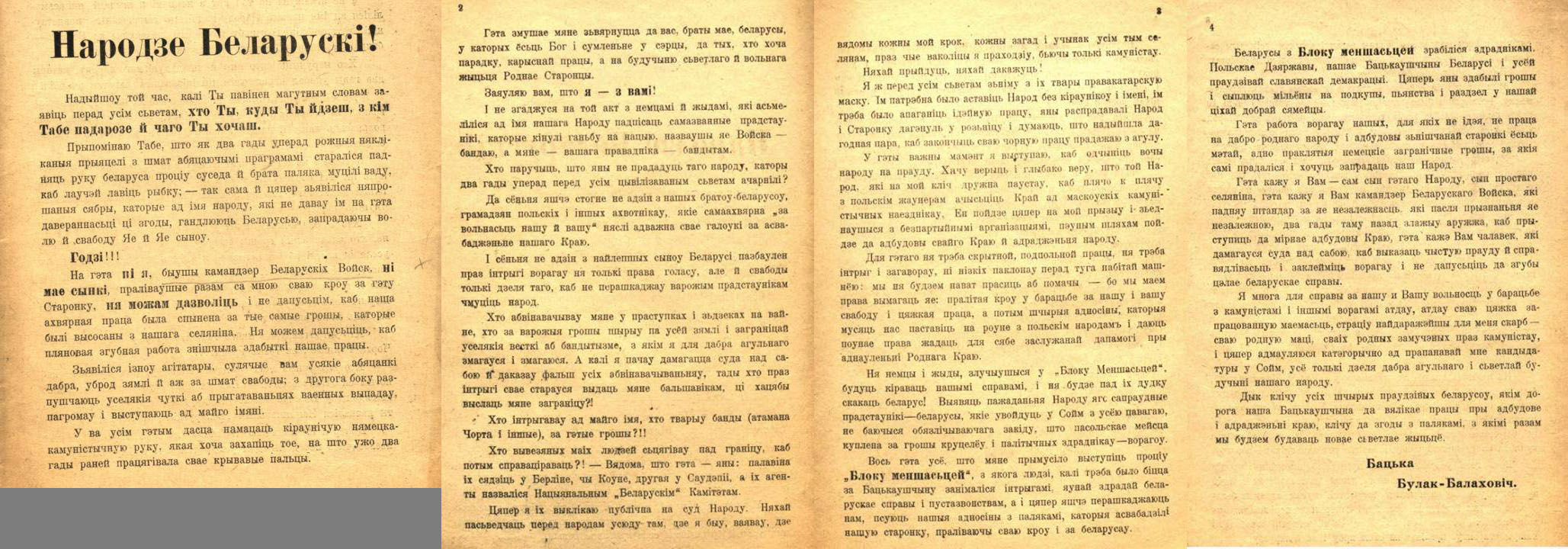 Про Белорусскую Народную армию Булак-Балаховича, газеты писали, что "он хочет создать Белорусскую Речь Посполитую" с временным правительством, в которое входили бы Роман Скирмунт и Эдвард Войнилович (см. "Воспоминания 1917-1928" Э. Войниловича)