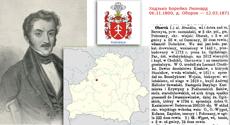 Ходзько Борейко Леонард (06.11.1800, д. Оборок, Молодечненский район, Минская область - 12.03.1871, Пуатье) — белорусский и польский историк, географ, картограф, издатель, архивариус и общественный деятель. Cекретарь "Товарищества Литвы и Руских земель"