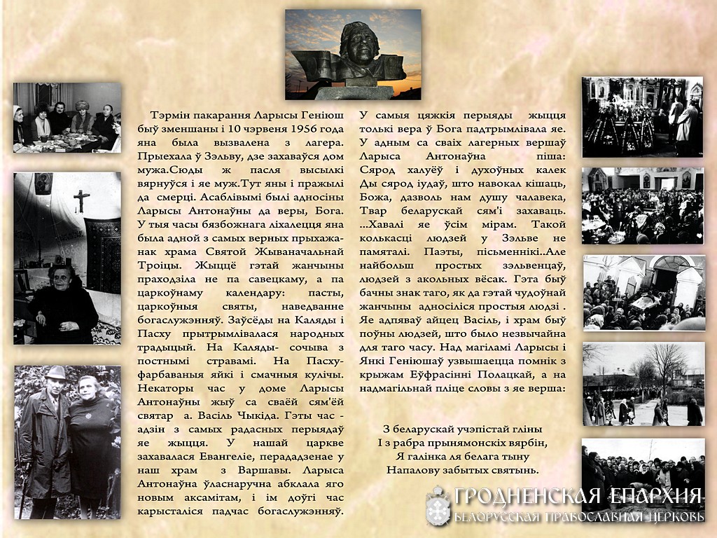 На удивление уважительно сделана страничка о Ларисе Гениюш на сайте Гродненской епархии БПЦ.