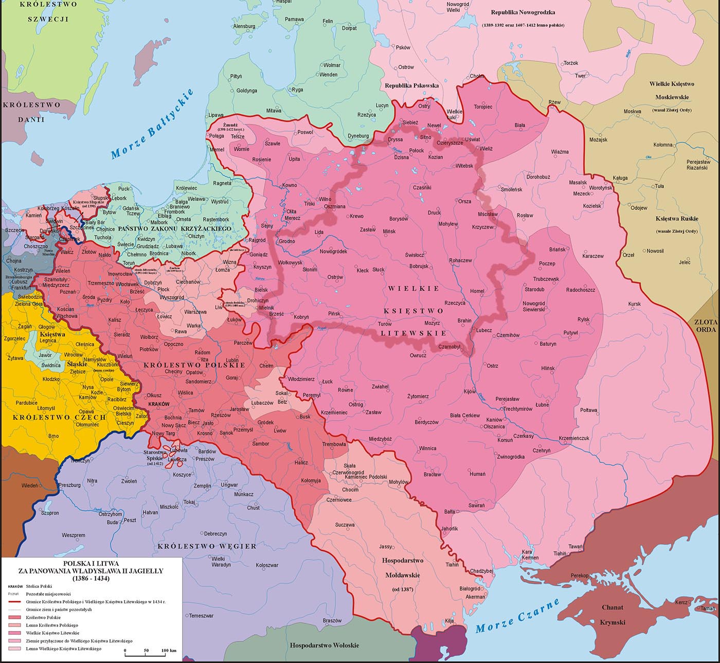 Чехи, отложившиеся в гуситскую эпоху от Сигизмунда Люксембургского, предлагали корону сначала Ягайло, потом Витовту, но чешско-польская уния не осуществилась вследствие противодействия католического духовенства, опасавшегося распространения в Польше гуситской ереси. Когда умер Сигизмунд и чешский престол занял Альбрехт, гуситы возобновили мысль о чешско-польской унии: чешская корона была предложена второму сыну Ягайло, Казимиру, но план этот снова потерпел неудачу по тем же причинам.