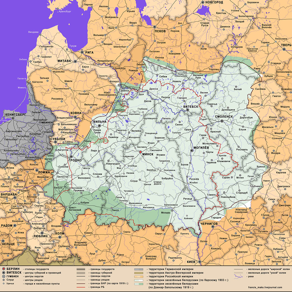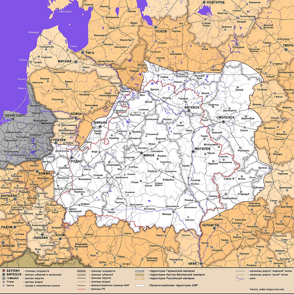 25 марта 1918 года на основе карт, составленных этнографами, были объявлены границы Белорусской Народной Республики.