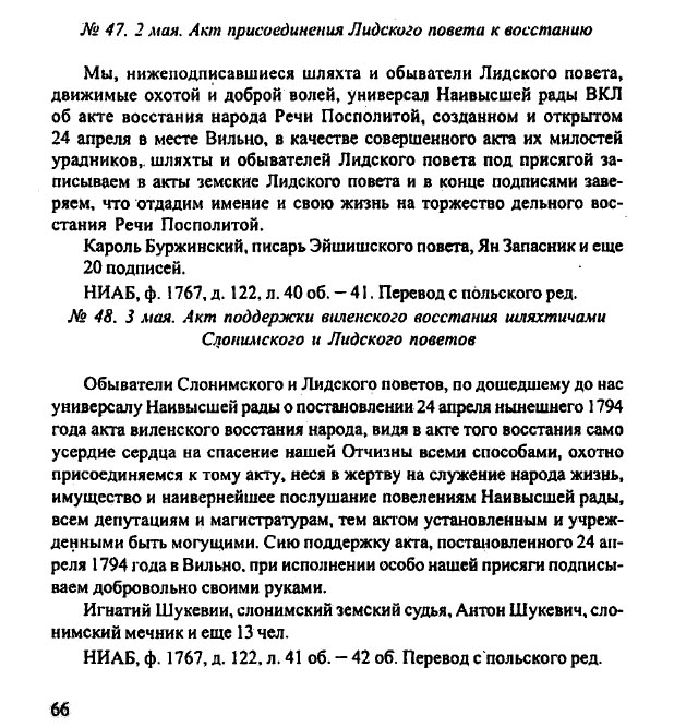 1796 Вскоре после смерти Екатерины II Тадеуш Костюшко был освобожден и в 1798 отбыл в Филадельфию (США). Во всех приходских церквях Западного края во время воскресной службы зачитывалось распоряжение, согласно которому в случае появления его на российской земле Костюшко, он должен был быть арестован.