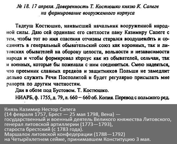 7 мая Костюшко издает Поланецкий Универсал — акт, провозглашавший опеку правительства над крестьянами и объявлявший их лично свободными. Универсал позволял крестьянам вступать в повстанческую армию.