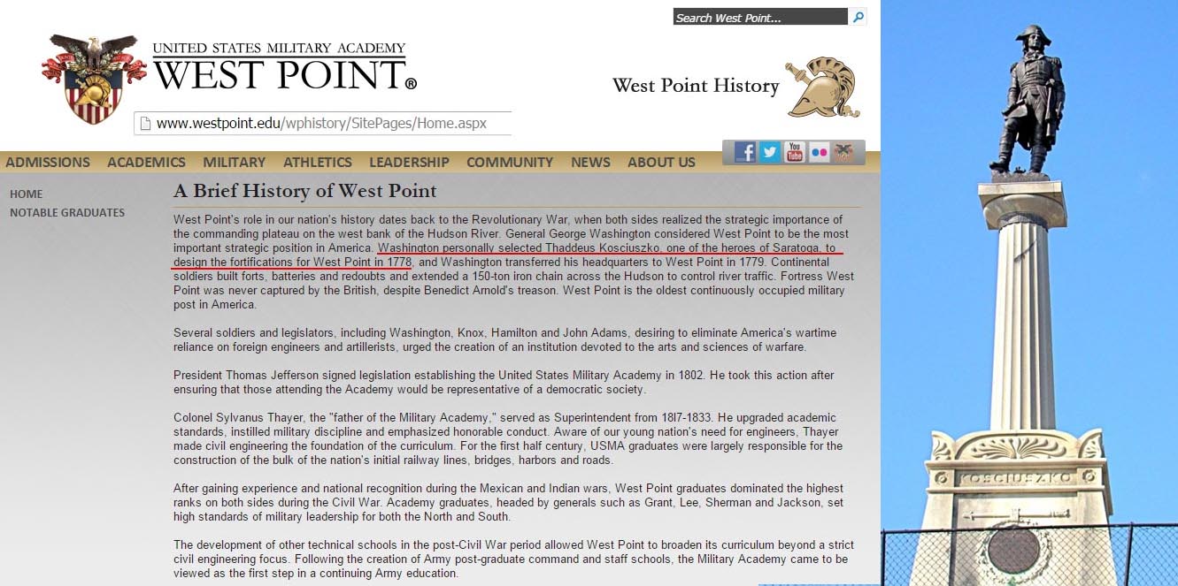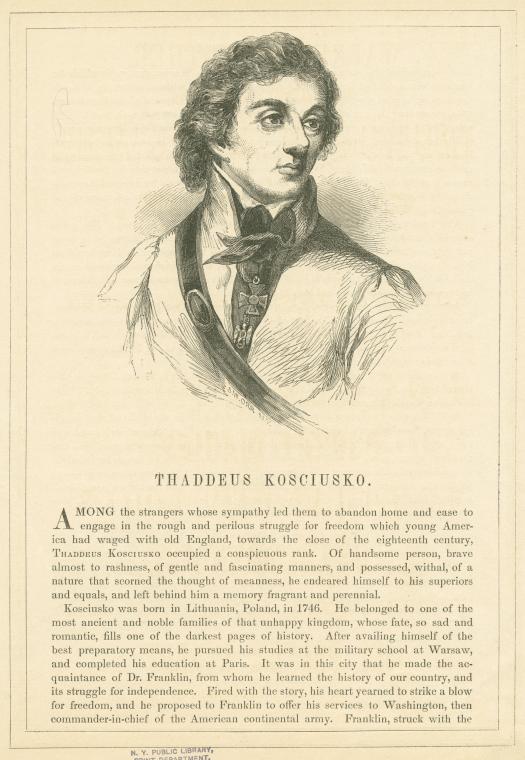 1776 После завершения учебы Костюшко переехал в Северную Америку, где в звании полковника Континентальной армии принял участие в войне за независимость США. В качестве военного инженера он разрабатывал укрепления и руководил их строительством, в том числе легендарного форта в Вест-Пойнте (ныне Военная академия США). В 1783 году, в знак признания его заслуг, Континентальный конгресс повысил его в бригадные генералы.