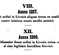 "132. В этом же году окрещенные пруссы со своим королем Мендольфом из-за многочисленных тягот, причиненных им крестоносцами, оставив христанскую веру, которую приняли ранее, ушли с некоторыми братьями Ордена крестоносцев к литвинам, смело к ним присоединившись...
