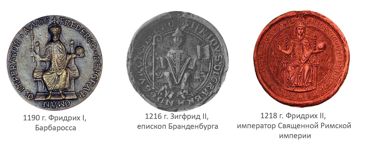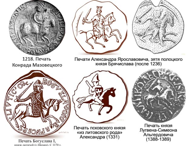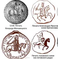 Интересно сравнить печать Миндовга с печатями его современников — немецких князей (вытеснивших пруссов и лютичей с Балтийского побережья) и соседей Литвы Миндовга (Мазовии, Полоцка, Пскова).