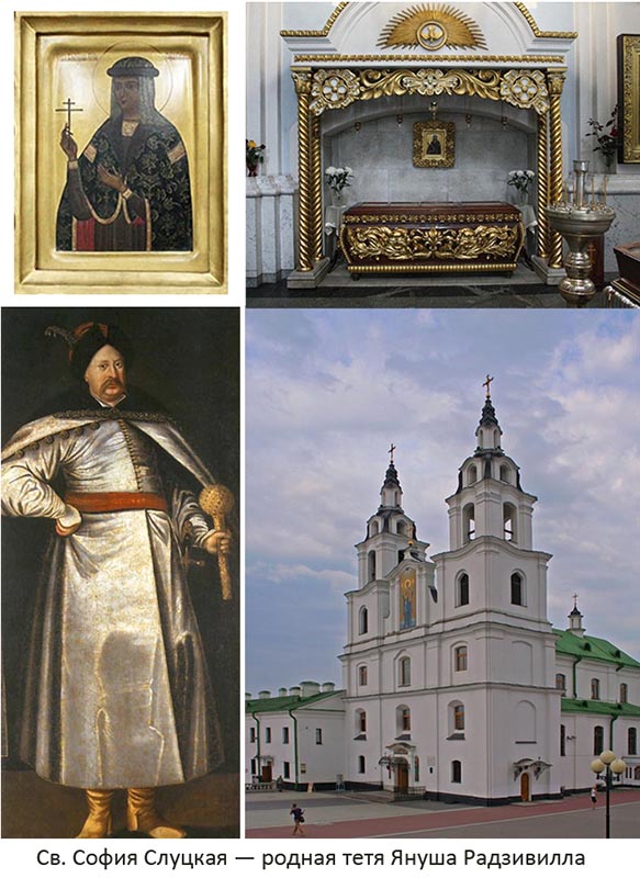 Януш Радзивилл — племянник святой Софии Слуцкой, католической покровительницы православия в Беларуси, чьи мощи лежат в минском Кафедральном соборе (главный храм белорусского экзархата РПЦ) — бывшем католическом монастыре бернардинок.