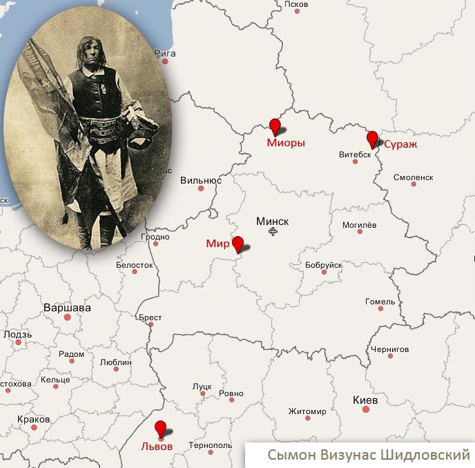 Сымон Визунас Шидловский (Szymon Wizunas Szydlowski) — паводле няпэўных даных (wedlug niepewnych danych) потомок шляхетского рода Святополк-Мирских. Его портрет в крестьянской сермяге с хоругвой Витебской земли стал символом соединения традиций простого народа и аристократии.