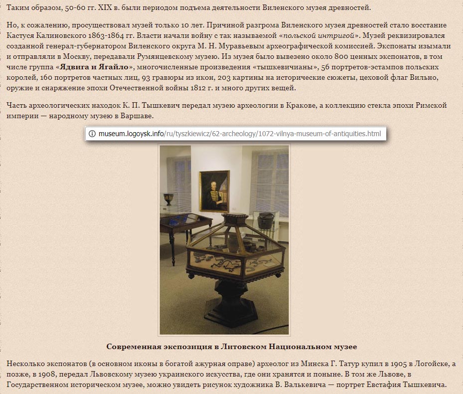 http://planetabelarus.by/articles/1767-logoysk-city/4758-vilenskiy-muzey-drevnostey-po-sledam-uteryannoy-kollektsii/?sphrase_id=16242