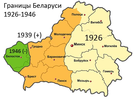 1946 По результатам Ялтинской конференции 1945 (подводящей итоги ВМВ), Белостокская область, а также небольшие участки Гродненской