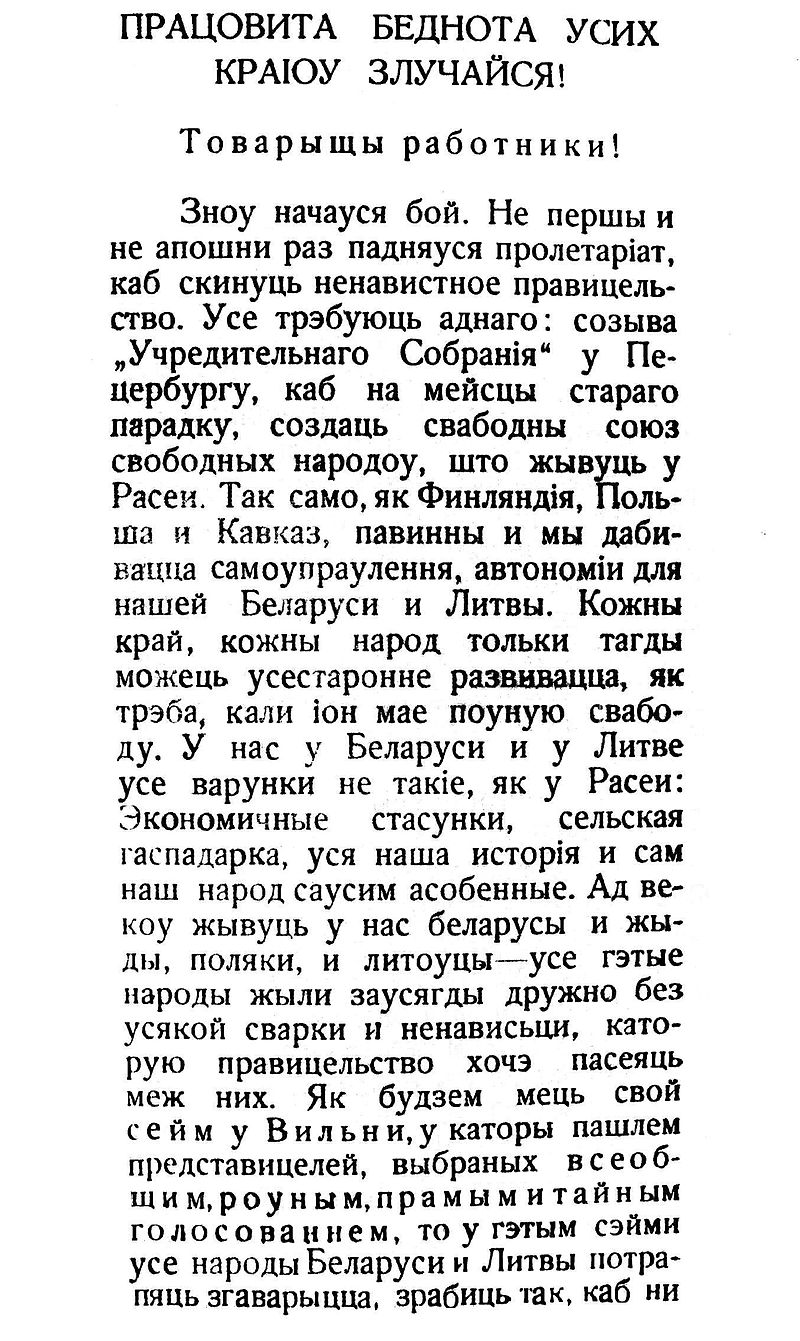 1919 Поражение БНР в борьбе с большевиками. 1 января в Смоленске была провозглашена Советская Социалистическая Республика Белоруссия,