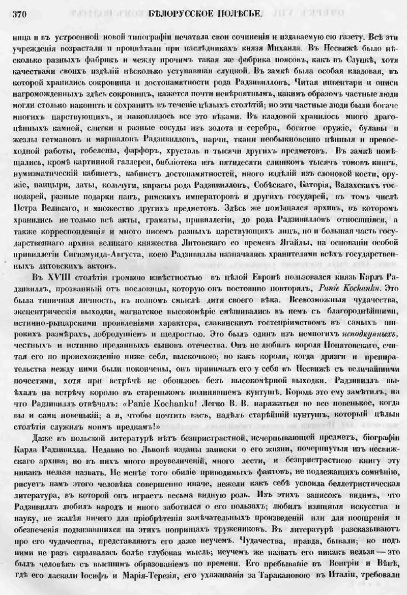 На страницах труда Императорского Русского Географического Общества "Живописная Россия" описаны город Несвиж и род Радзивиллов, как они воспринимались современниками после раздела Речи Посполитой.