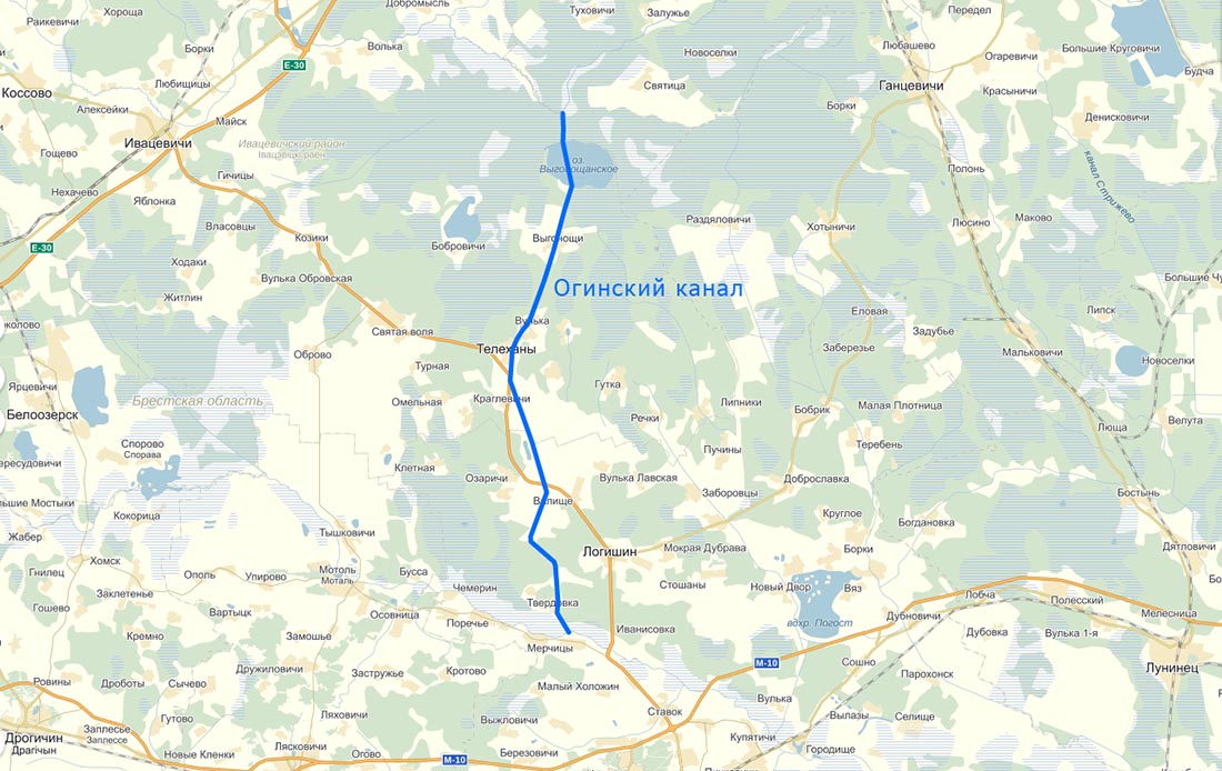 Длина Огинского канала около 55 км. Частью канала являются озера Выгонощанское и Вульковское. На канале было 2 пристани — Телеханы и Огинская. Первоначально он назывался Телеханский канал.