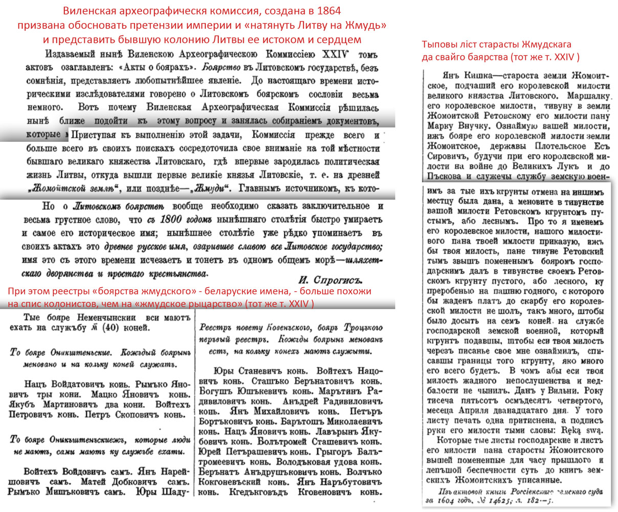 После Разделов Речи Посполитой империя старательно переносит имя Литва на этническую Жмудь. После подавленеия Восстания-1863 учреждается Виленская археографическая комиссия по разбору древних актов XVI-XVII вв. — которая даже в предисловии четко обозначает свои цели. И с удилвением там же отмечает — жители Ковенской губернии страну свою называют "Жмудь", а себя не литвинами а "жмогусами", и все горожане и шляхта говорят "наречием белоруским" и носят беларуские имена.