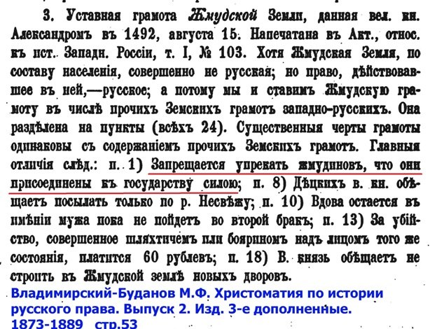 "Жмудь — в XIII и даже в XIV вв. занимала большое пространство, заходя в пределы нынешней Виленской губ. [до самых границ белорусских земель]"