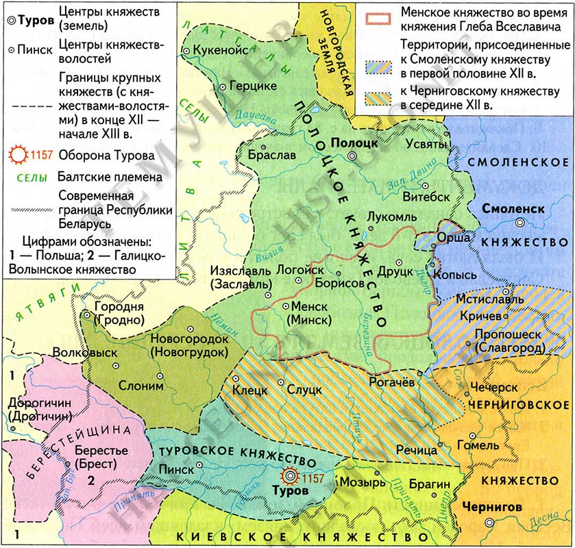 достигало берегов Рижского залива) было разделено на Минское, Витебское, Друцкое, Изяславское, Логойское, Стрежевское и Городцовское княжества