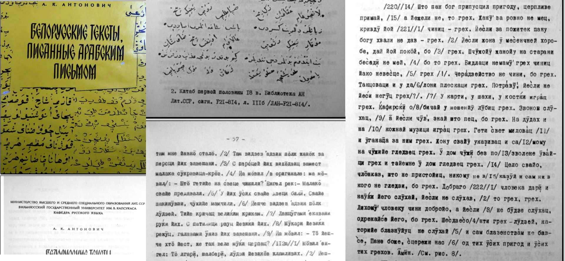 Затое фанэтыку тагачаснае мовы добра перадаюць кітабы - пісьмовыя дакумэнты мясцовых татараў. Пасьля прыходу з Тахтамышам з запрашэньня Вітаўта, яны прынялі мову Літвы й тутэйшыя імёны й прозьвішчы, але захавалі свой альфабэт і сваю рэлігію.