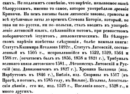 Што ж датычыцца тагачаснае інтэлігенцыі й увогуле вышэйшае клясы, то іхняя паўсядзённае маўленьне ў значнай ступені насіла наддыялектны характар і была, бяссумненна, бліжэй за ўсё да тое формы, якая выкарыстоўвалася ў спраўнай пісьменнасьці. На гэта ўжо неаднаразова й цалкам абґрунтавана ўказвалі дасьледнікі ў мінулым.