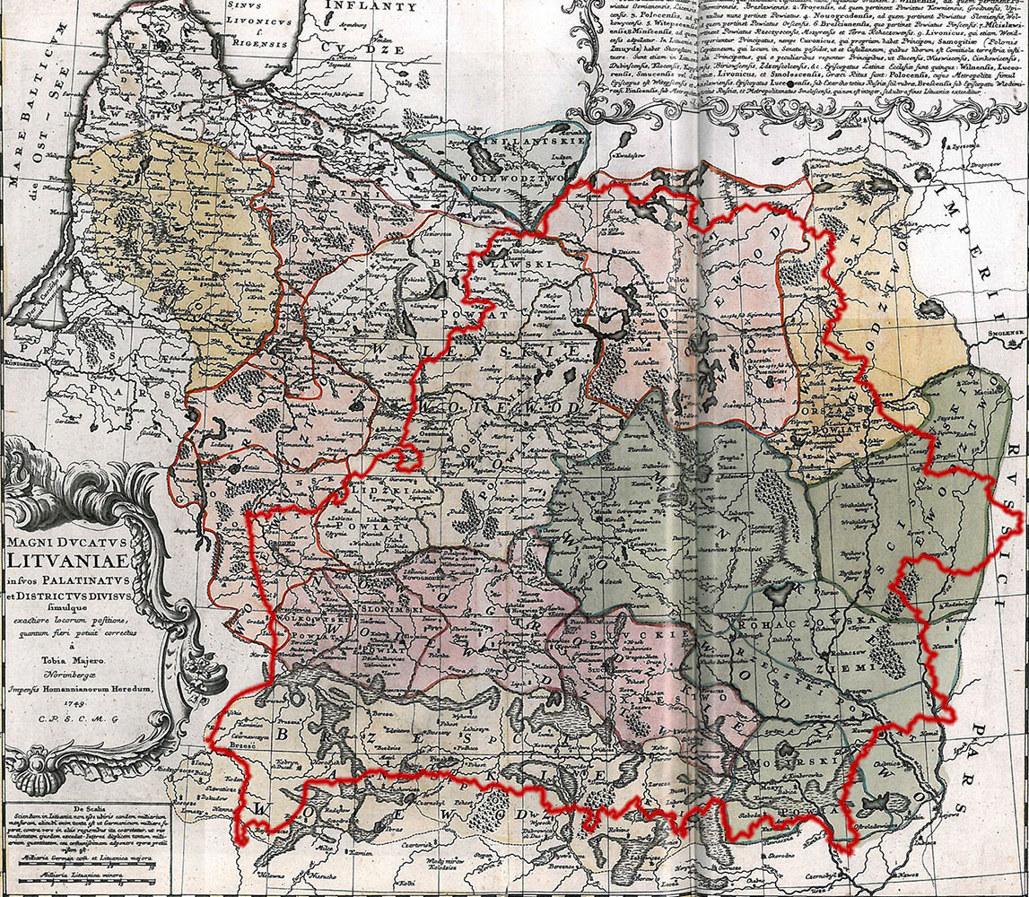 Карта "Litvaniae, административоное деление, 1749" взята из альбома "Картография ВКЛ XV-XVIII вв".