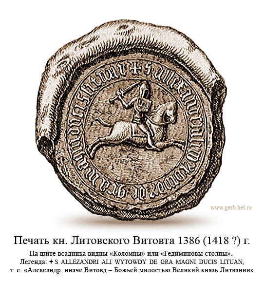На монетах изображения «Колюмн» появляются с конца XIV в., в правление Витовта (1392-1430), внука Гедимина. Согласно Яну Длугошу, в Грюнвальдской битве 1410 года из 40 литовских хоругвей 10 были с изображением «Колюмн».