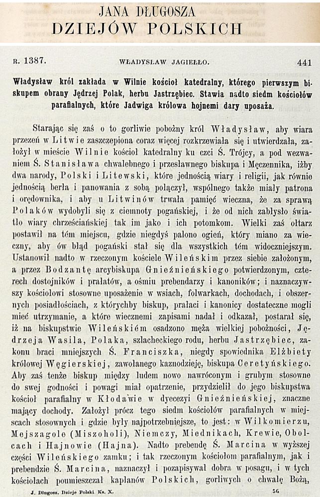 В основе статьи лежат работы Яна Длугоша (1415-1480), современника Ягайло (великий князь и король умер, когда Длугошу было 19 лет).
