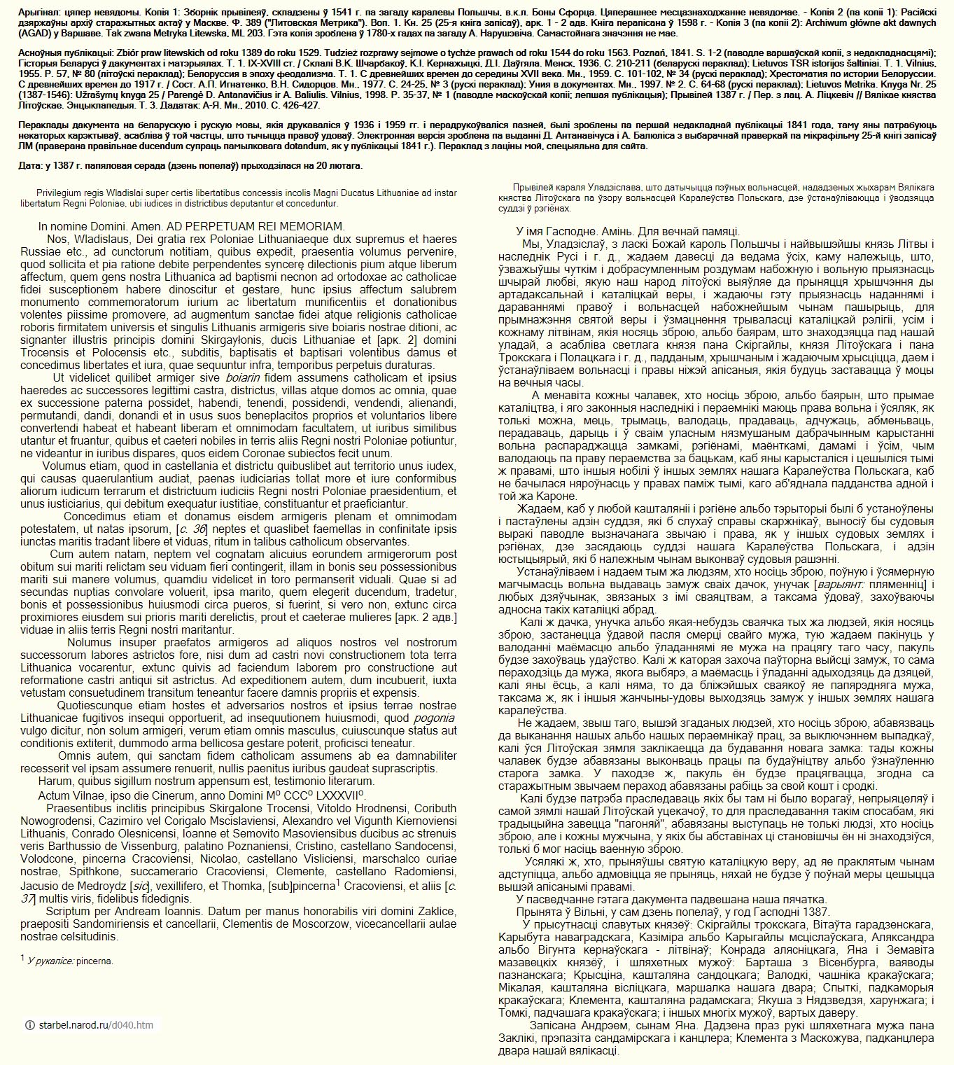 http://pravo.by/pravovaya-informatsiya/pomniki-gistoryi-prava-belarusi/kanstytutsyynae-prava-belarusi/letapisy-gramaty-pryvilei-khii-khvi-st-st/belaruskiya-gramaty-i-pryvilei-khiii-khiv-st-st/pryviley-vyalikaga-knyazya-lito-skaga-i-karalya-polskaga-uladzislava-yagayly-1387-goda/