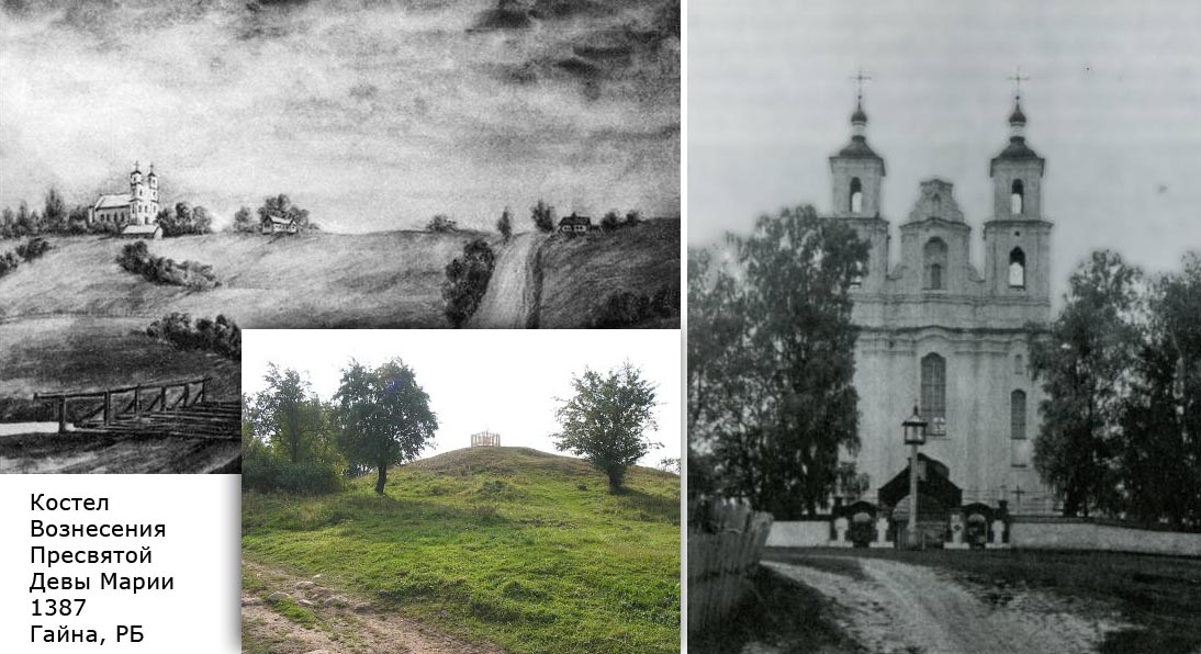 1387 Ягайло возвращается в Вильню и проводит "крещение Литвы", заложив первые фарные костелы в Вилькомире, Мейшаголе, Медниках, Неменчине, Крево, Гайне, Обольцах и Лиде(?). Чуть позже были заложены костелы в Быстрице (1390), Ошмянах (1391), Фара Витовта в Гродно (1389) и костел св. Роха на золотой Горке в Минске (1390-е).