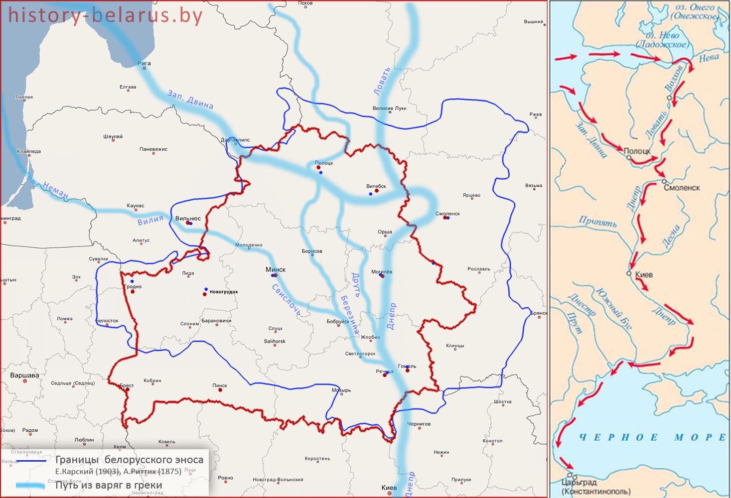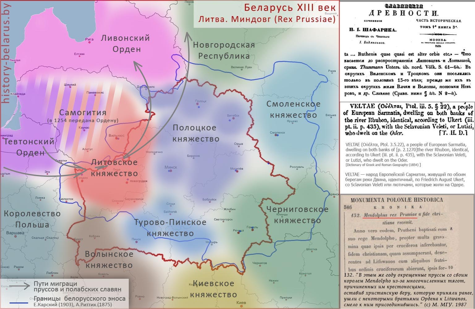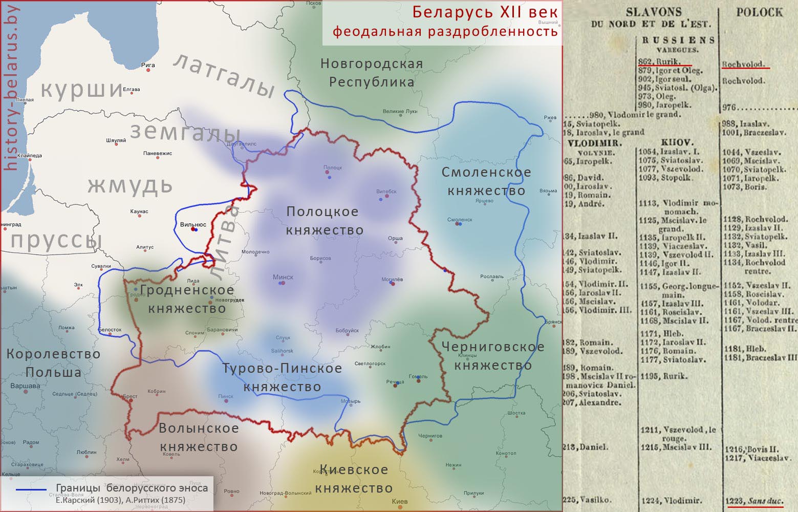 Рядом с Полоцким княжеством, на берегу моря Геродота, в исторической Литве под предводительством Миндовга складывается княжество Литовское. К 1266-69 году, после смерти его сына Войшалка и зятя Шварна, княжеская (королевская) династия обрывается.