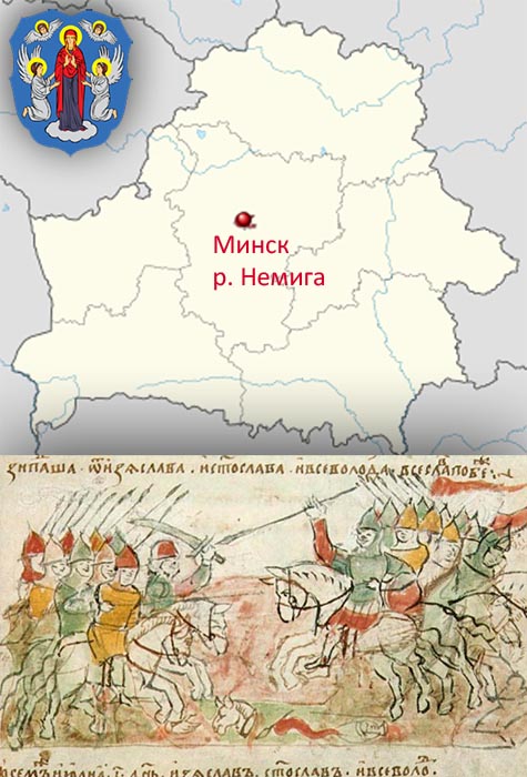1067 Битва на Немиге. Эпичное сражение, вызывавшее трепет у летописцев. Первое упоминание о Минске и Дудутках. По итогам битвы Всеслав Чародей был приглашен на переговоры, пленен, освобожден киевским вече и избран киевским князем.