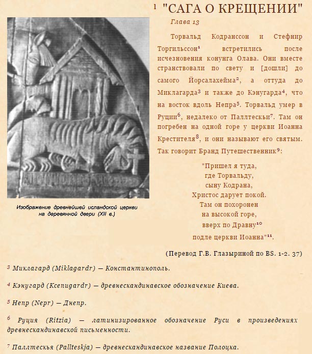 986 Торвальд Кодранссон. Крещение Полоцка, в отличие от остальной Руси, связывают с именем Торвальда Кодранссона (Торвальда Вандроўніка) — легендарного христианскиого миссионера и путешественника. В Полоцке он основал монастырь святого Иоанна Крестителя и в Полоцке же похоронен. Согласно исландской саге "Прядь о Торвальде Путешественнике" Торвальд похоронен "в горе у церкви Иоанна и почитается как святой".