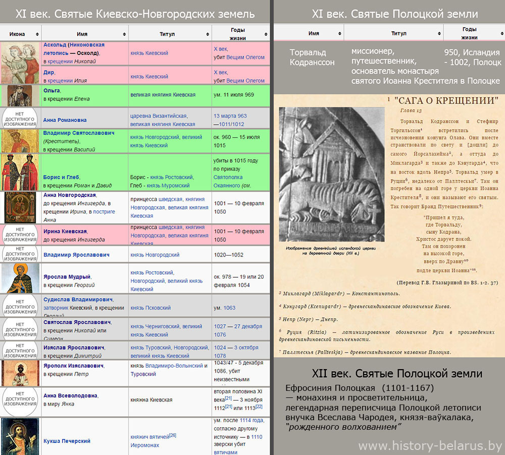 Крещение языческих капищь и первые христианские святые — Ефросиния Полоцкая и Кирилл Туровский.