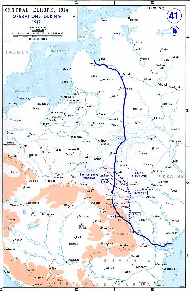 1915 "Вялікі адступ" — шэраг параз Расейскай арміі і адступ ад Варшавы амаль да Менску. Лінія фронту, расьсекшая Беларусь з поўначы на поўдзень, пратрымаецца да самага сканчэньня вайны.