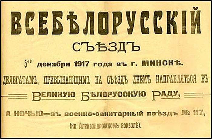 17 (30) сьнежня Першы Усебеларускі з'езд быў разагнаны узброенымі бальшавікамі (як калісьці Часовы Урад у Петраградзе). Вялікая беларуская Рада сыйшла ў падпольле.