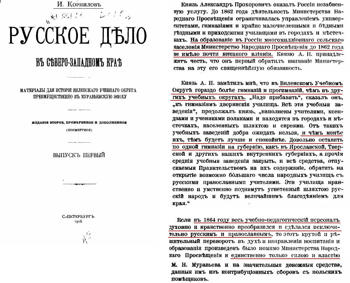 После подавления восстания Калиновского 1863 г. интеграция Северо-Западного края в империю усилилась — к 1865 году "весь учебно-педагогический состав [ учебных заведений ] духовно и нравственно преобразился и сделался исключительно русским и православным... единственно силою и властью М. Н. Муравьева" И. П. Корнилов, 1864