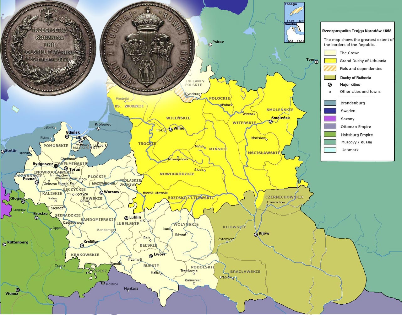 внешним угрозам — главным образом, Московской экспансии на запад. По условиям унии Земли Русские отходят Польше.